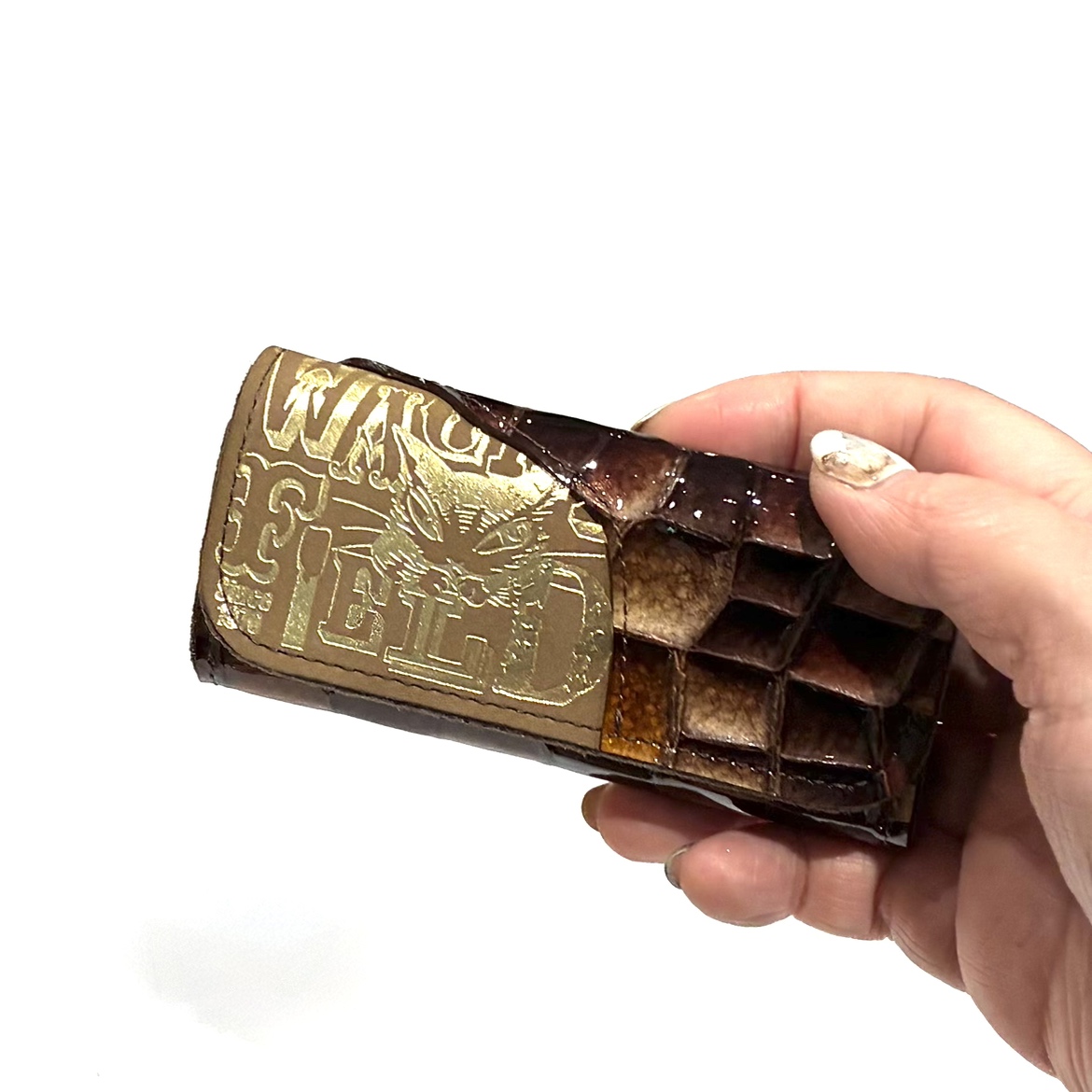 牛革に施したクロコダイルの型押しひとつひとつののくぼみに