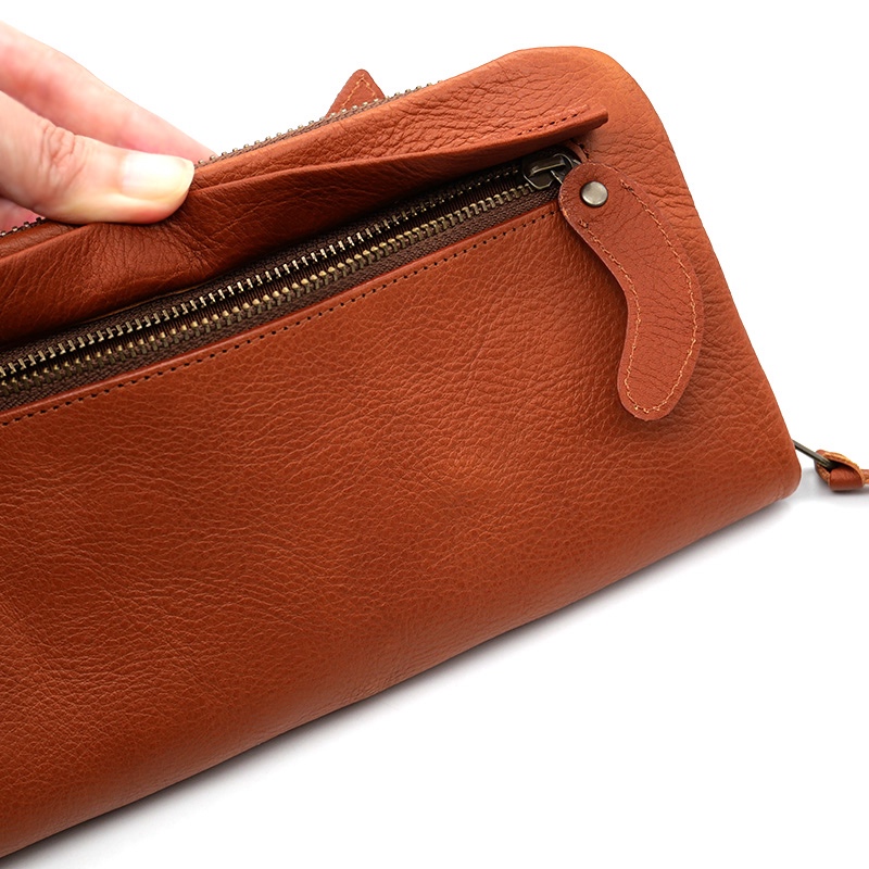 ナチュラルな質感のシボ革と、芯材が入っていないやわらかさで、使い込むほどに革らしさの増すお財布。