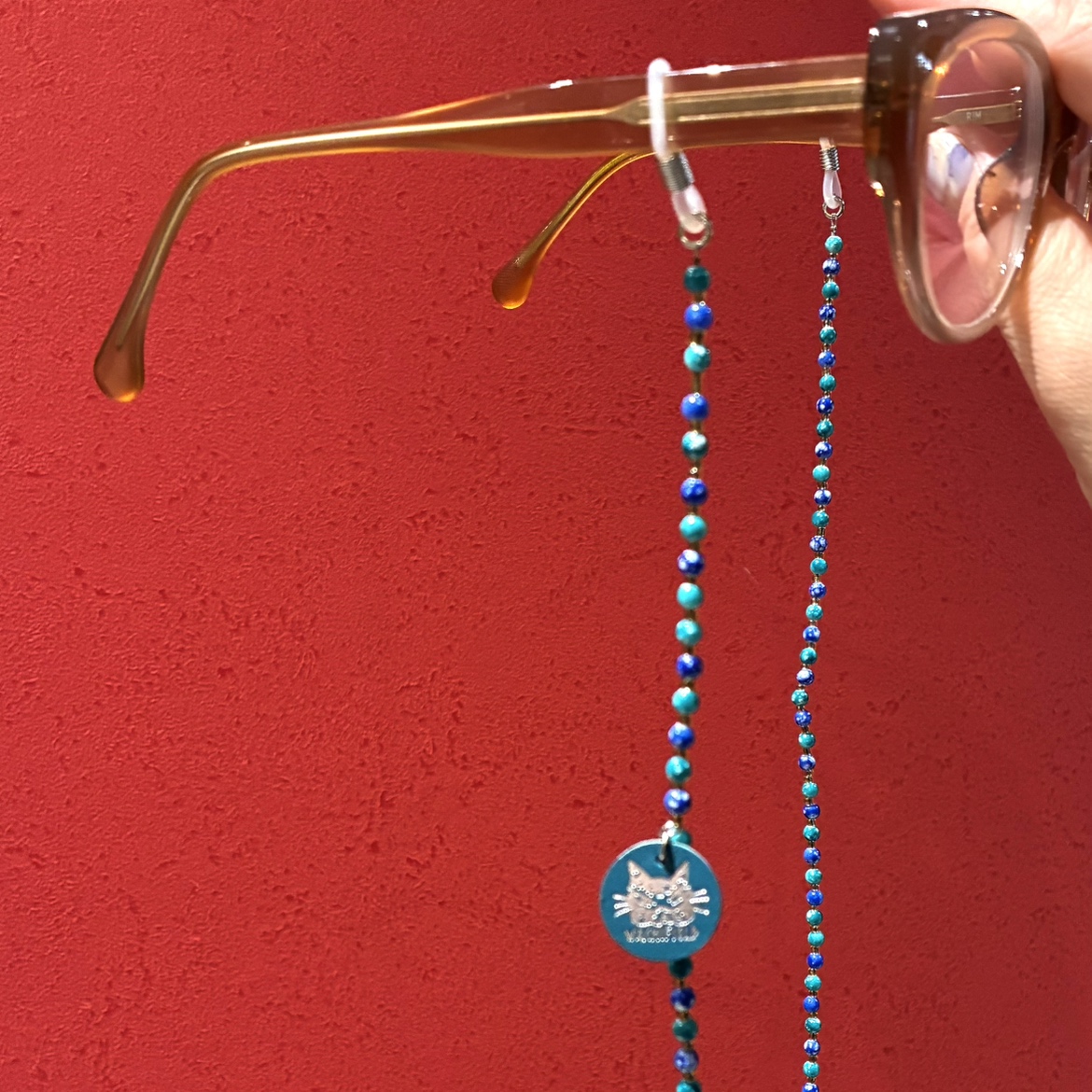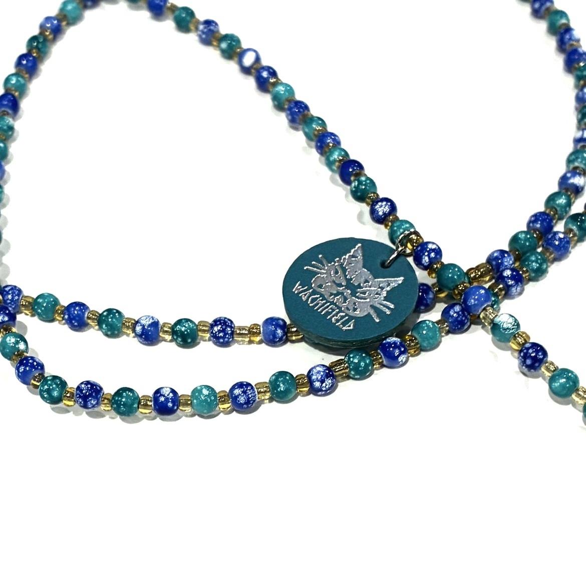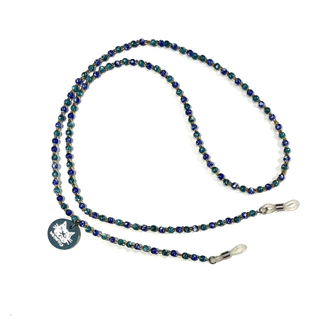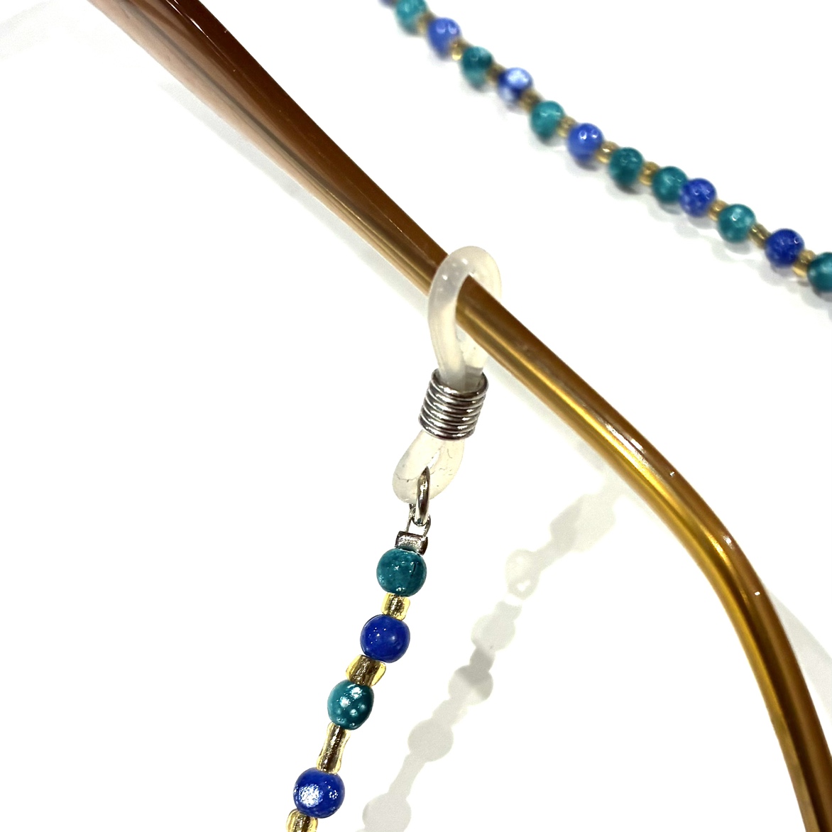 ビーズメガネホルダー 青緑