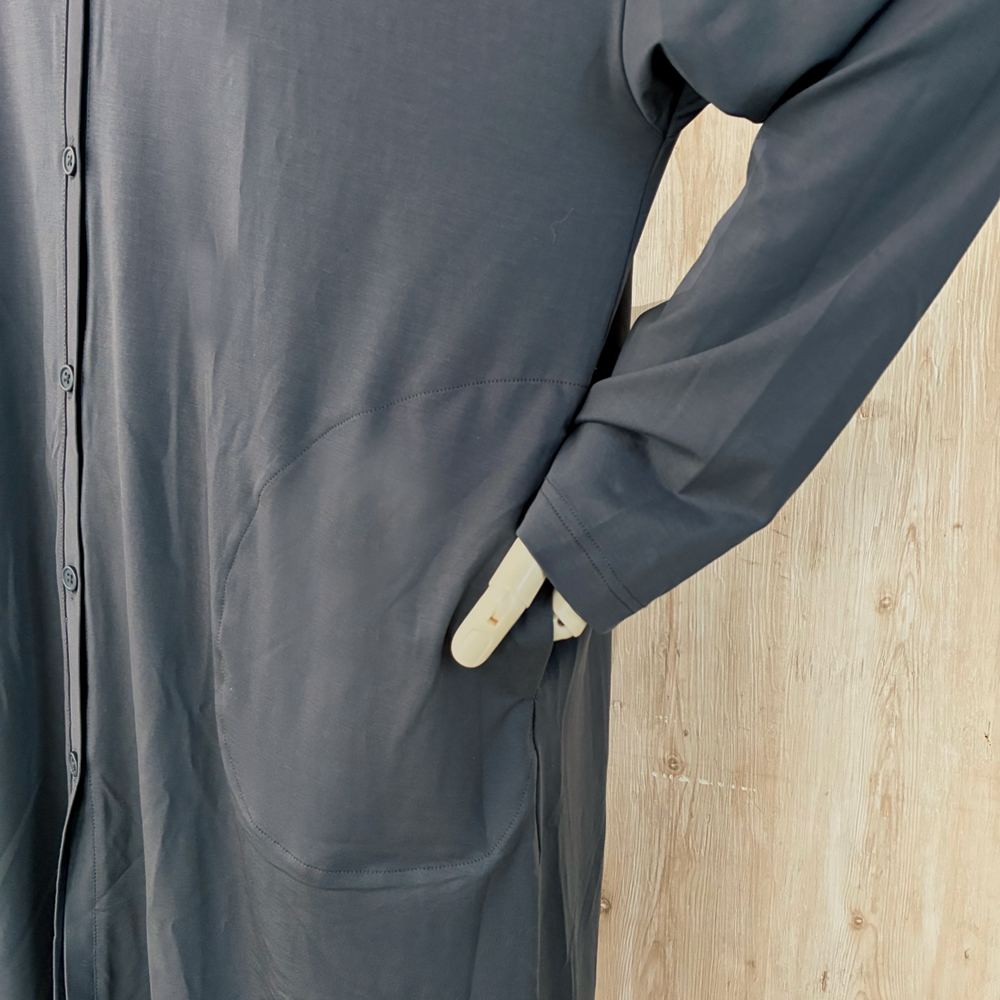 フロントはシンプル、両サイドポケット付き。素材の効果でひんやり感が