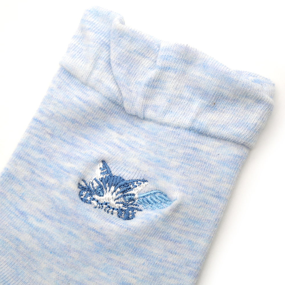ワンポイント刺繍の天使ダヤンと杢ブルーの本体色が涼し気カラー。