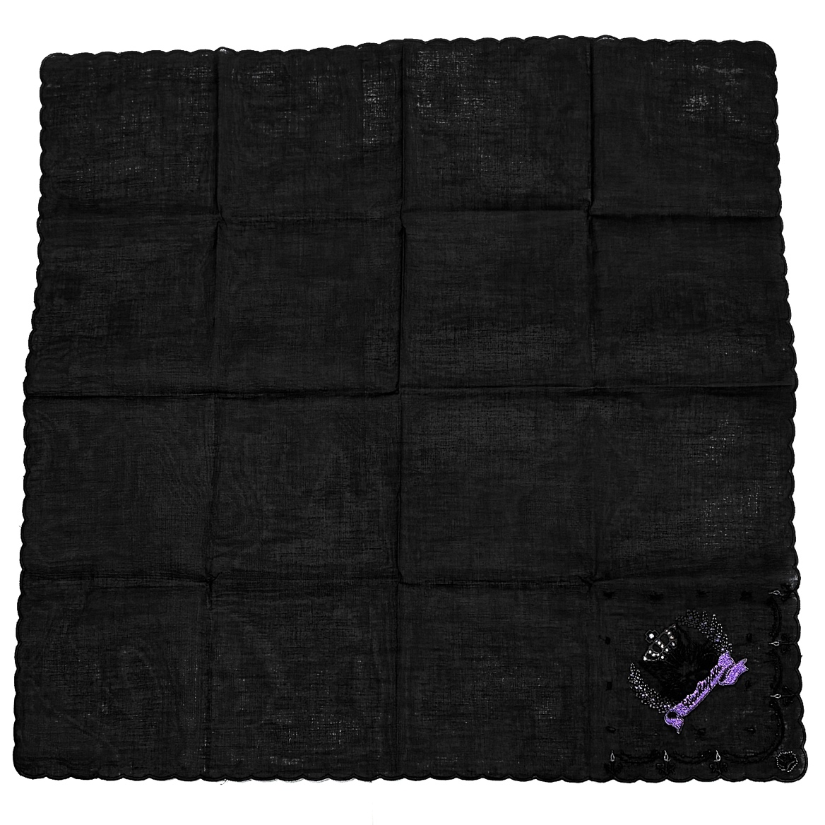 シンプルな綿ハンカチにコーナー刺繍を施し、持つ人を選びません。