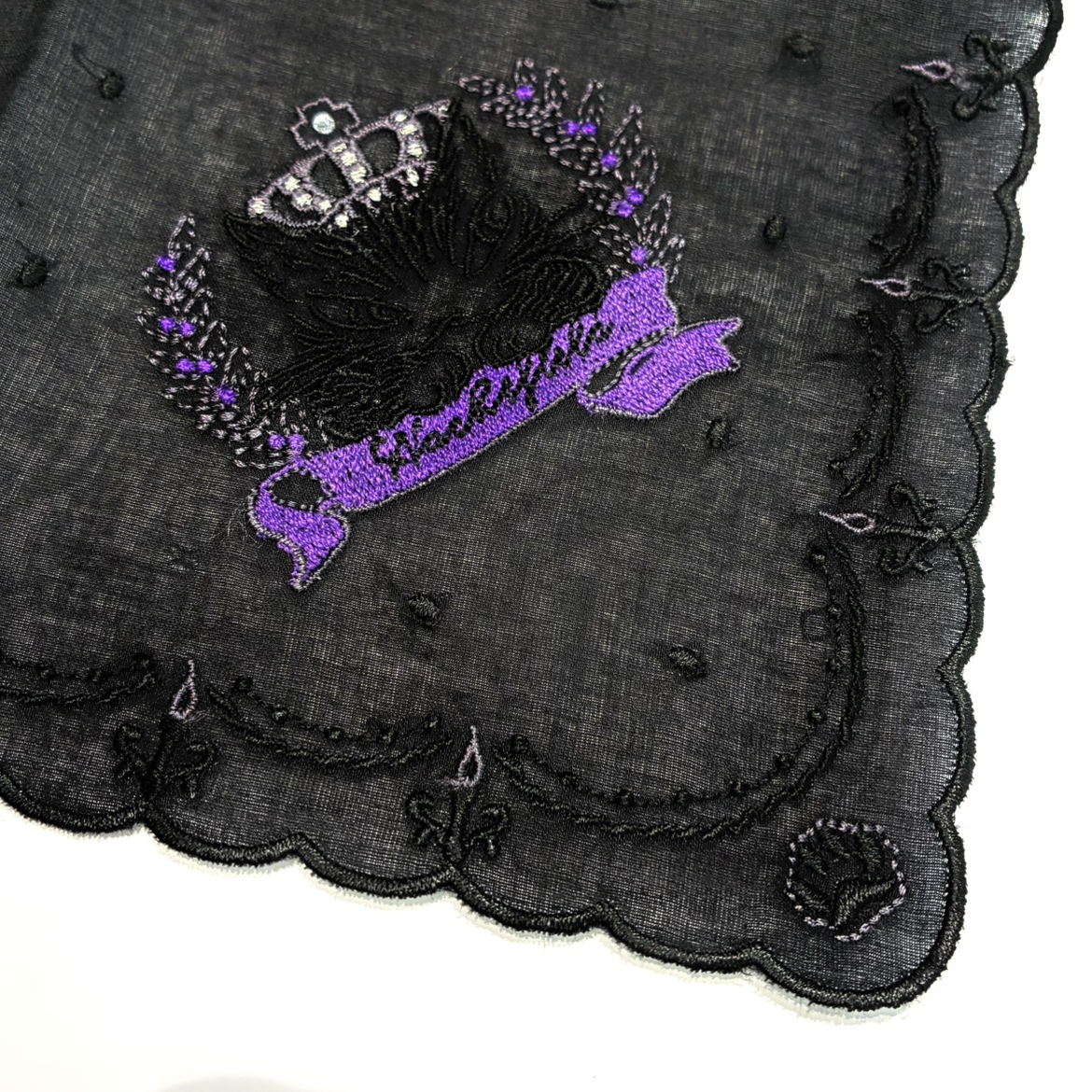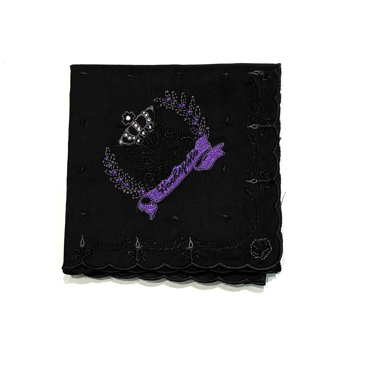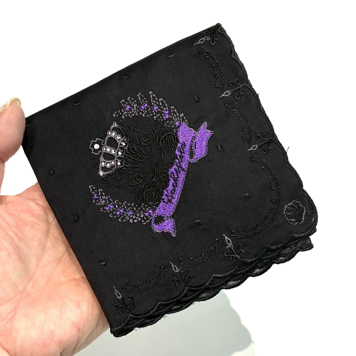 シンプルな綿ハンカチにコーナー刺繍を施し、持つ人を選びません。