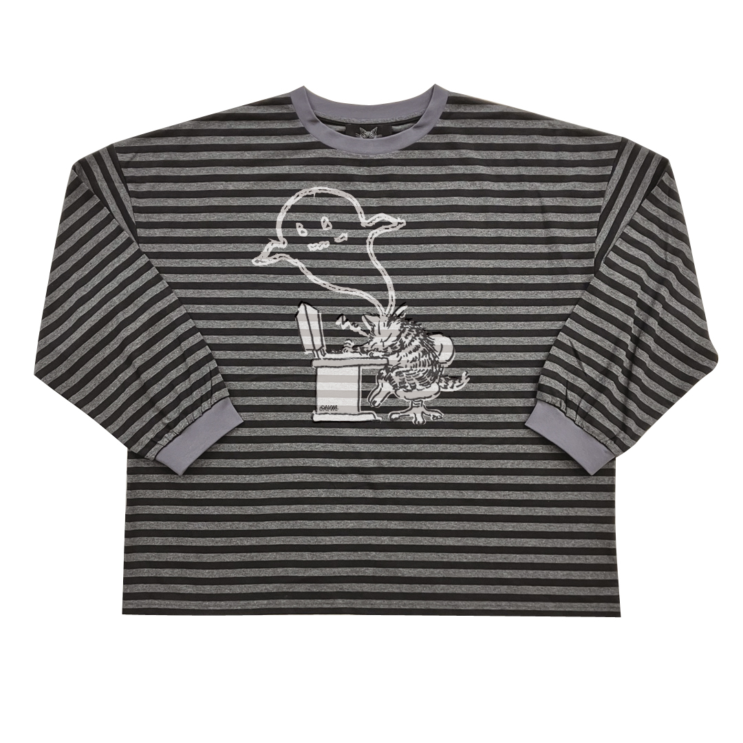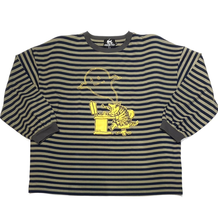 ボーダーワイド長袖カットソー パソ猫 黒系 size:フリー