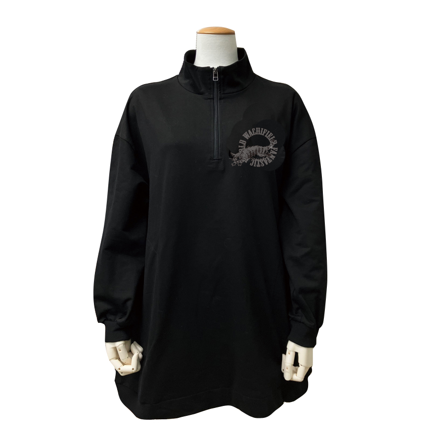 飛猫ハーフジップポケ付チュニック 黒 size:M