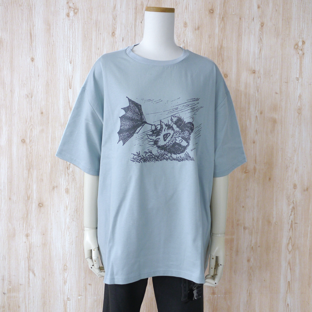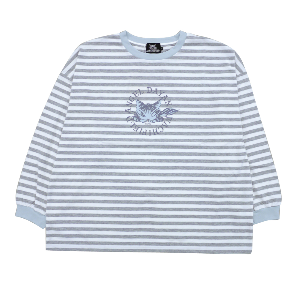 ボーダーワイド長袖カットソー 翼の猫 杢系 size:フリー