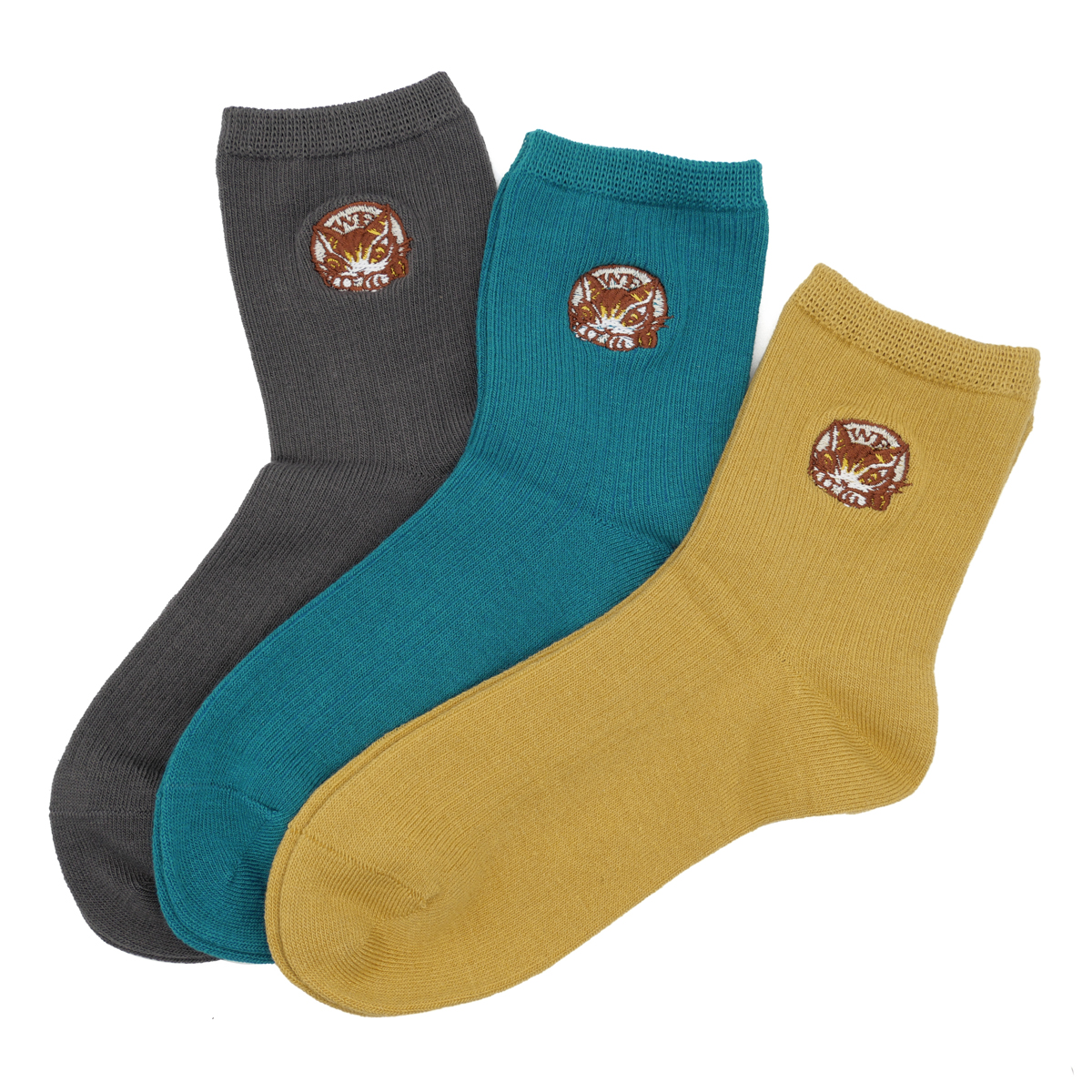 ソックス3足セット WF 濃グレー&辛子&青緑